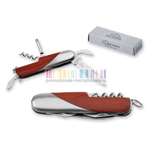 Briceag multifunctional cu maner din metal cromat din lemn - 82467