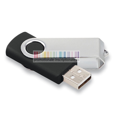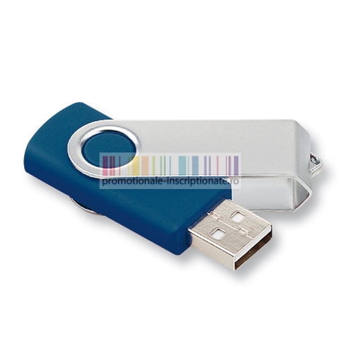 Memory stick USB cu capacitate de stocare de 2 GB, 4GB, 8 GB, 16 GB sau 32 GB, cu corp dreptunghiular din plastic disponibil in cinci culori (albastru, albastru deschis, rosu, alb si negru) si capac mobil pentru protectie realizat din metal cu finisari cromate.
