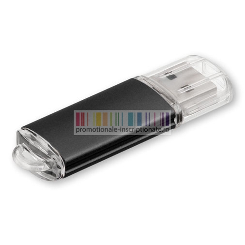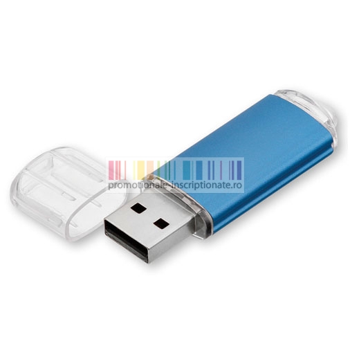 Memory stick USB promotional realizat din metal cu corp dreptunghiular, capac de protectie din plastic transparent si capacitate de stocare de 2 GB, 4 GB, 8 GB, 16 GB sau 32 GB.