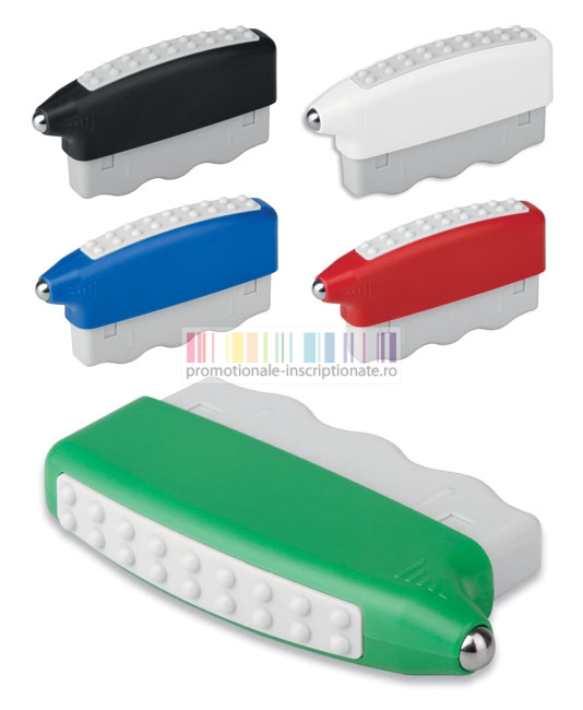 Instrumente promotionale pentru relaxare si masaj, realizate din plastic cu maner colorat si suprafata utilizata ca obiect antistres - disponibile in cinci culori.