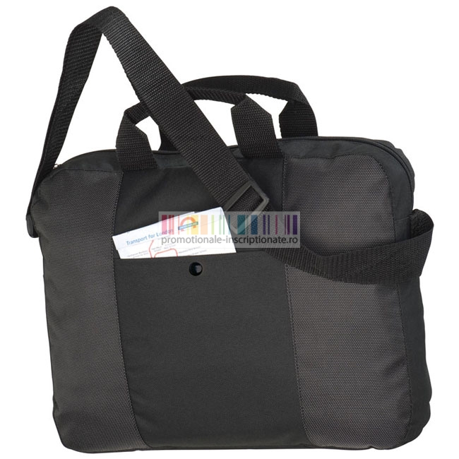 Genti promotionale pentru documente, confectionate din poliester 1680D cu design modern, compartiment princpipal spatios cu inchidere prin fermoar, buzunar frontal cu inchidere prin capsa, manere solide si bareta ajustabila pentru umar.