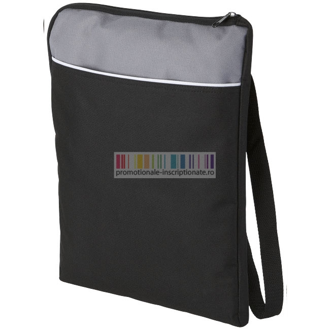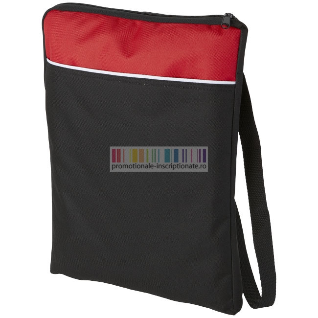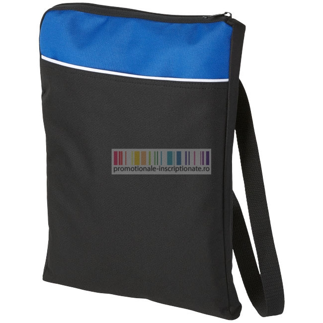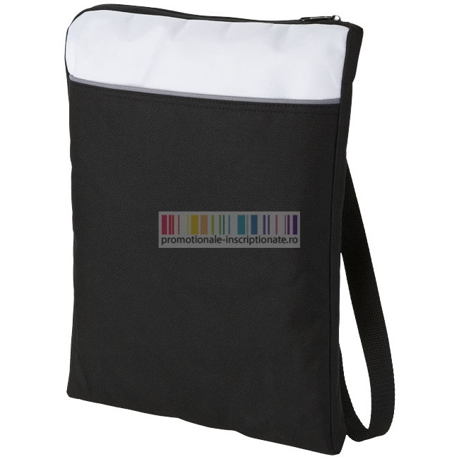 Borseta de umar bicolora, confectionata din poliester cu compartiment principal spatios pentru documente A4, cu inchidere prin fermoar si bareta pentru umar din banda neagra.