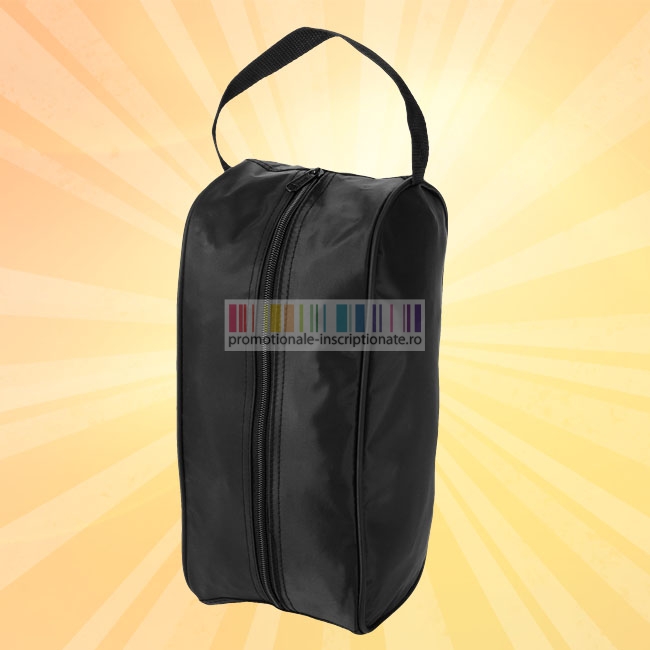 Borseta promotionala confectionata din nylon 70D, cu compartiment spatios pentru o pereche de incaltaminte, cu inchidere prin fermoar si maner pentru prindere.