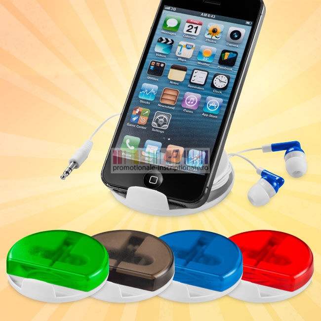 Casti audio promotionale in cutie cu suport pentru telefon - 10821800