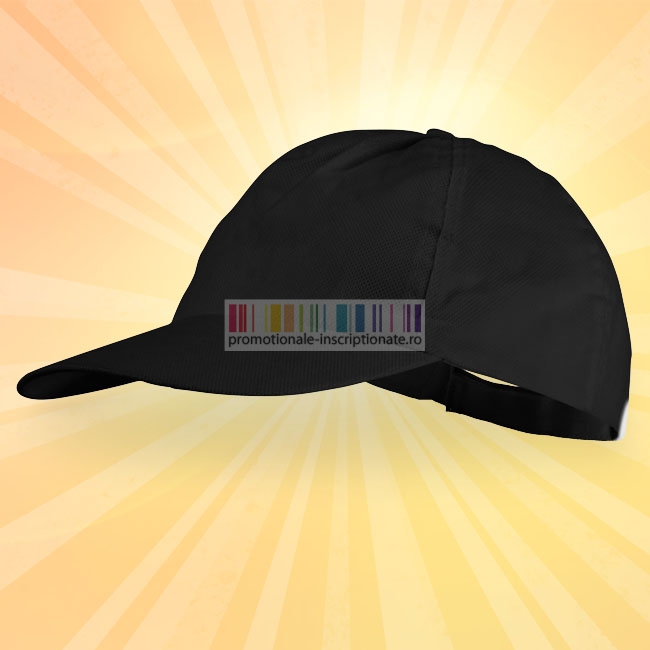 Sapca promotionala unisex, confectionata din material sintetic si disponibila in 5 culori cu parasolar intarit si inchidere prin banda cu scai.