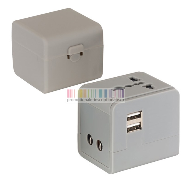 Adaptoare promotionale universale din plastic cu 2 porturi USB - 0402713