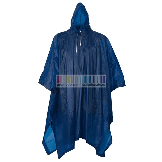 Pelerina promotionala de ploaie pentru biciclisti, cu gluga si inchidere prin snur alb.