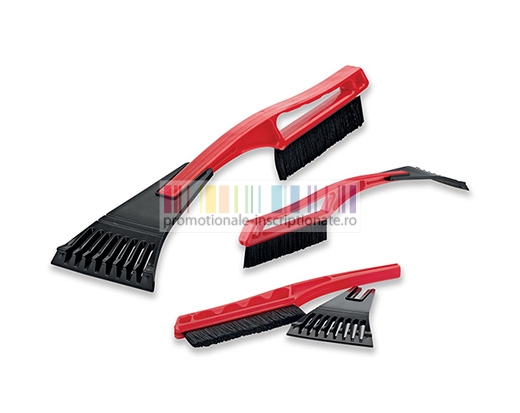 Perie auto promotionala, realizata din plastic rosu cu racleta detasabila neagra.