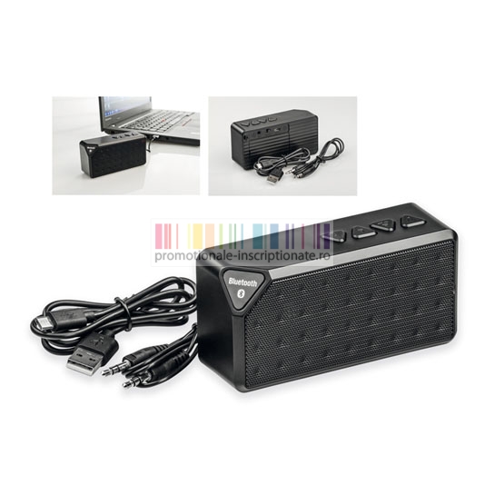 Boxa promotionala audio, cu microfon integrat si conexiune bluetooh 2.1 cu raza de pana la 10 metri.