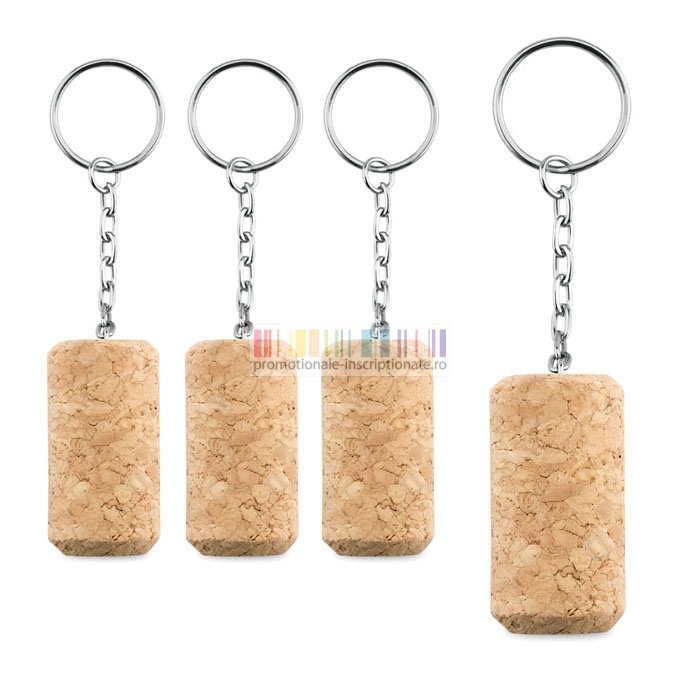 Brelocuri promotionale cu dop din pluta pentru sticle si cu inel metalic mare pentru chei.