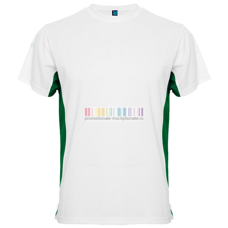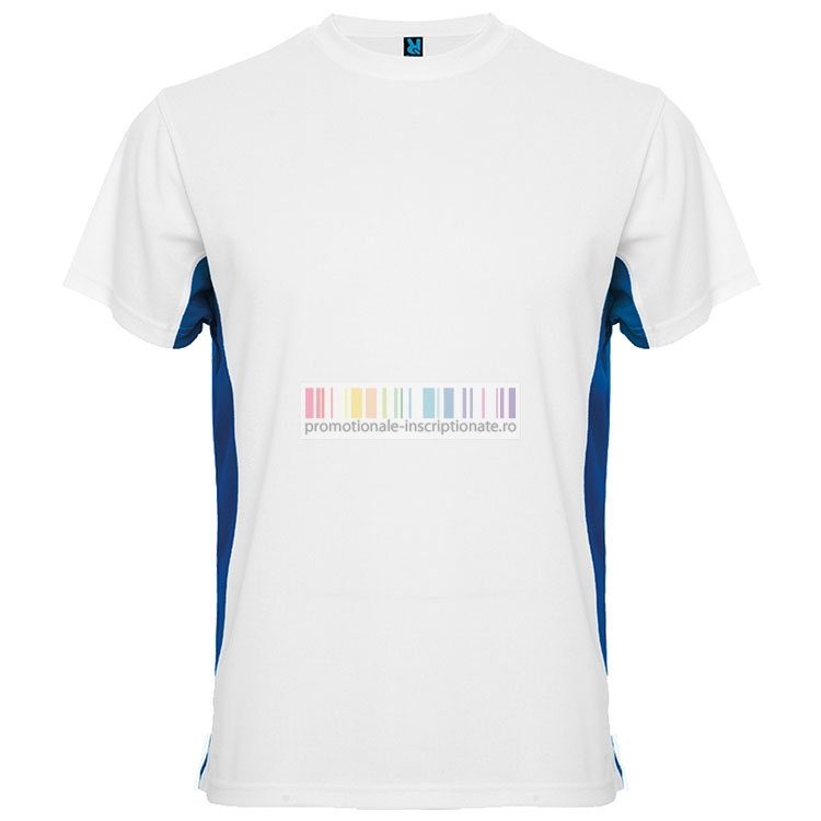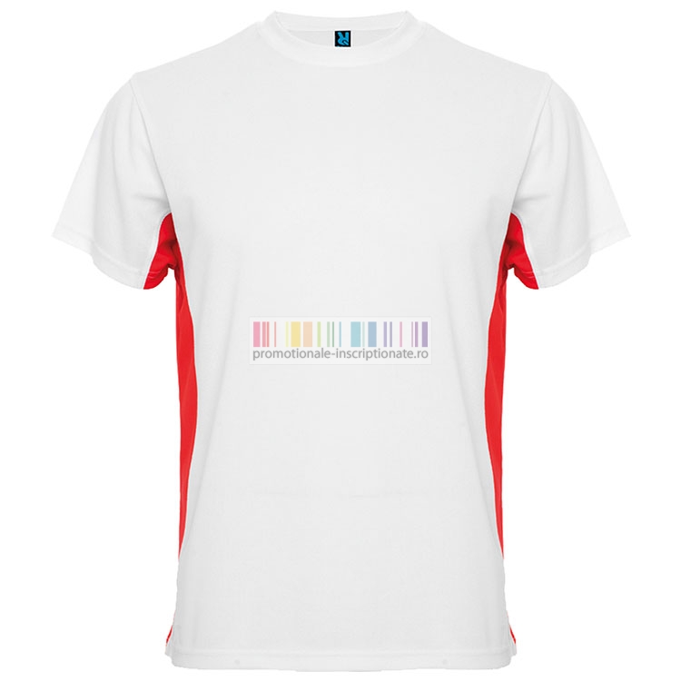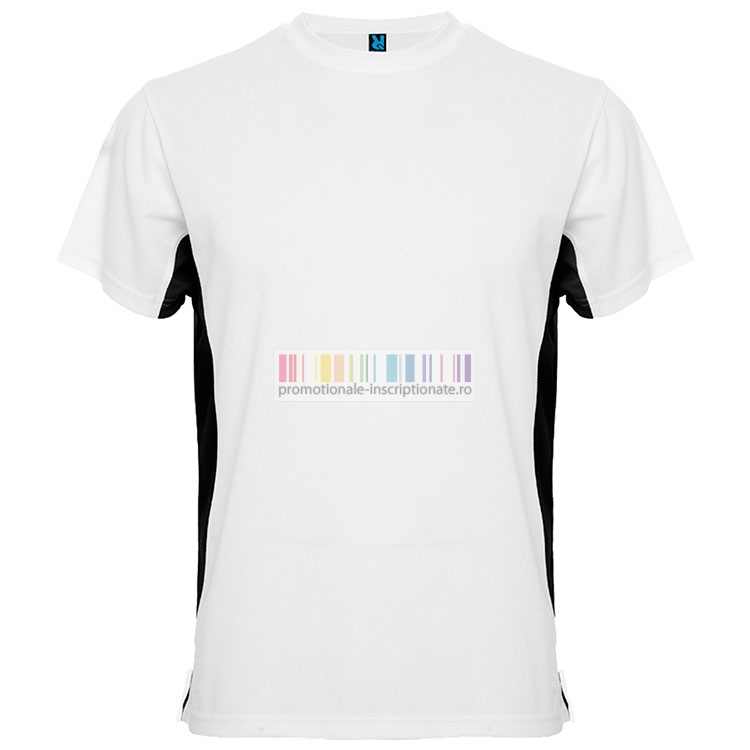 Tricouri barbatesti sport, bicolore, confectionate din poliester de 140 gr/mp, cu maneci scurte si guler rotund.