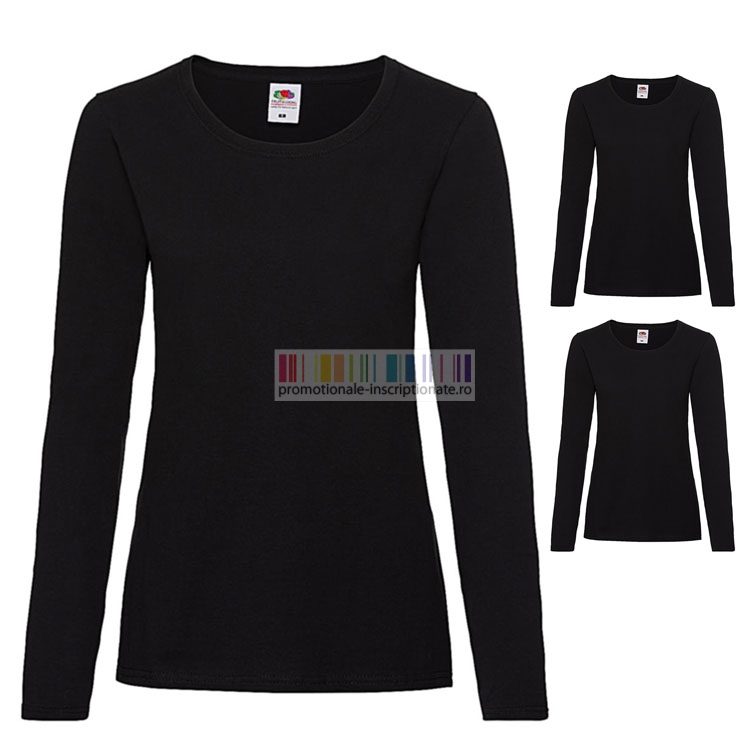 Tricouri de dama din bumbac cu maneca lunga si guler rotund - F18401