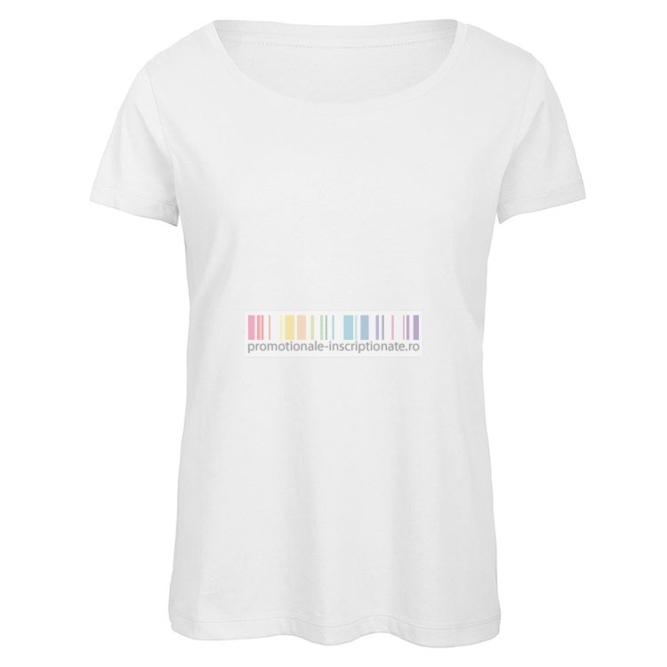 Va putem livra aceste tricouri de dama personalizate prin transfer termic, serigrafie sau broderie.