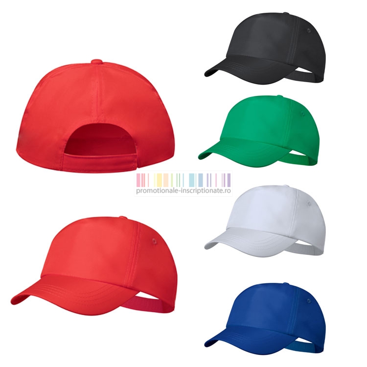 Sepci promotionale unisex confectionate din PET reciclat de 180 gr/mp, disponibile in 5 culori cu 5 panele si parasolar intarit, cu inchidere ajustabila velcro (scai).
