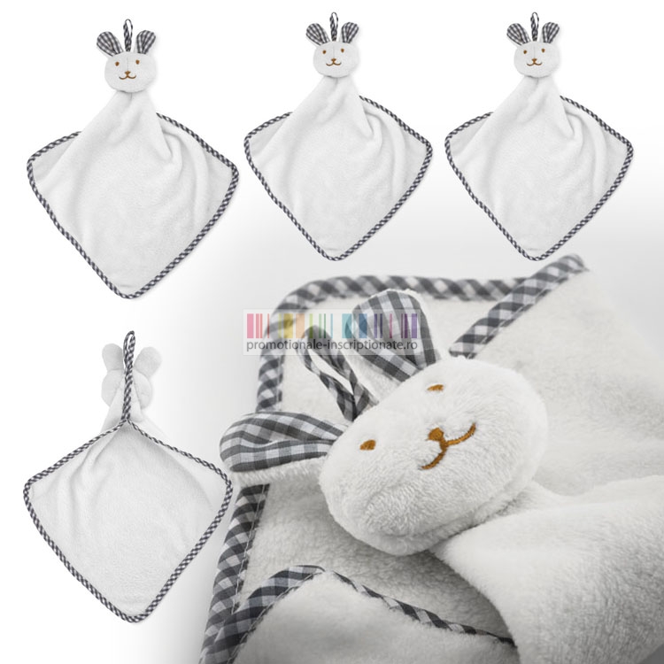 Paturi promotionale pentru copii realizate din stofa moale cu figurina de iepuras din plus.