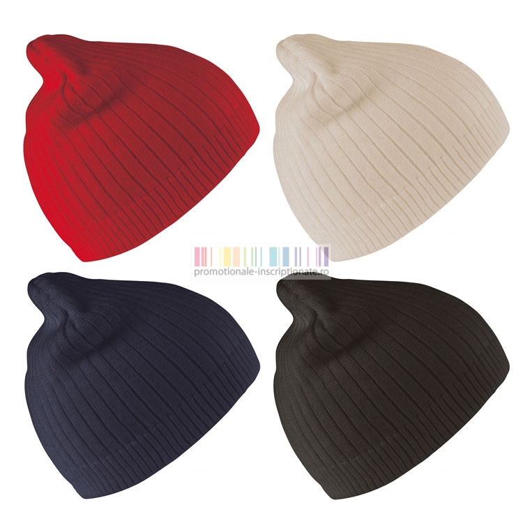 Caciula promotionala de iarna, unisex, confectionata din bumbac 100% si disponibila in 4 culori cu strat dublu.