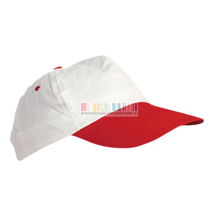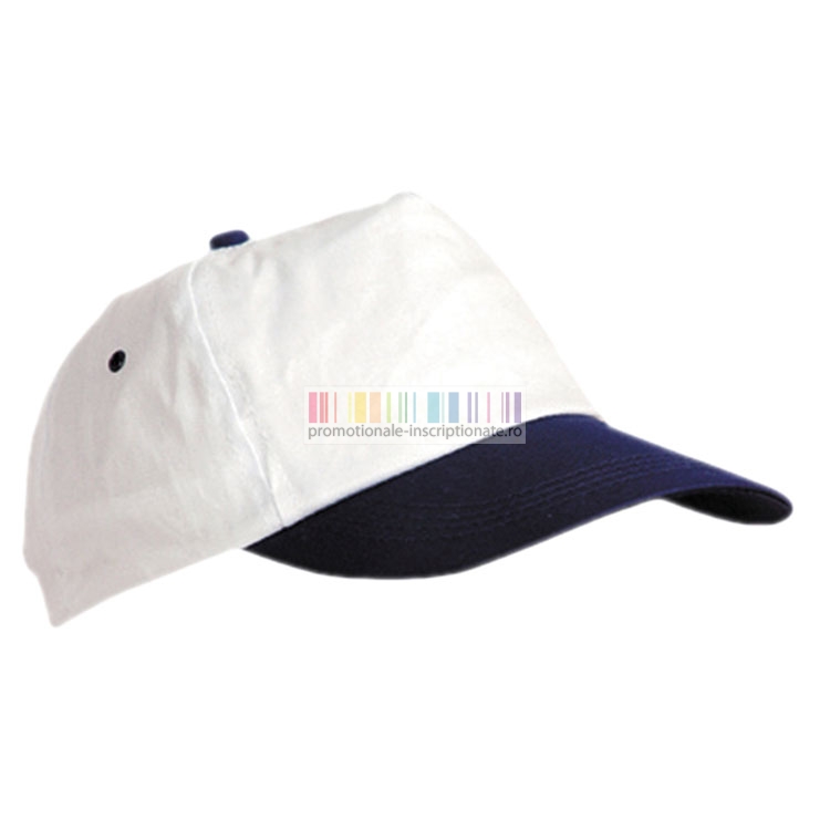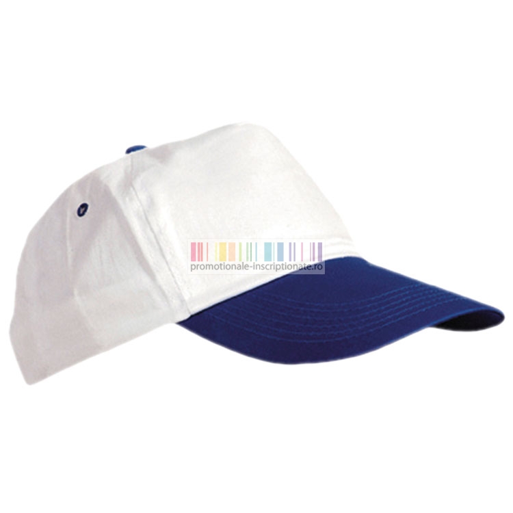 Sepci promotionale albe cu cozoroc colorat si 5 panele - Combi 7016