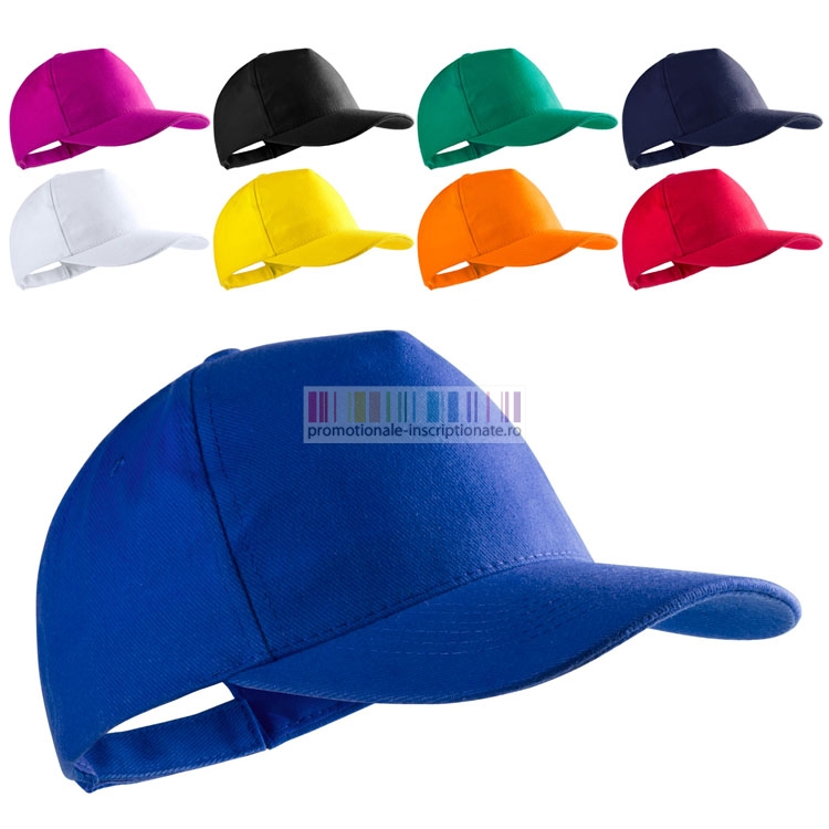 Sepci promotionale unisex realizate din bumbac 100%, disponibile in 9 culori, cu inchidere ajustabila prin banda scai.