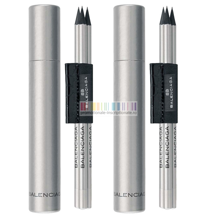 Seturi de 3 creioane promotionale de lux, marca Balenciaga, cu banda elastica pentru prindere, finisari de inalta calitate si design modern.