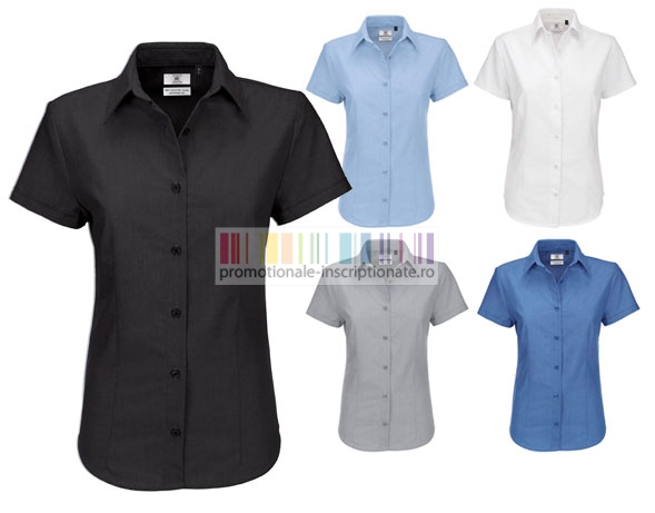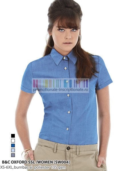 Camasi promotionale de dama, Oxford SSL Women, cu guler feminin, confectionate din bumbac 70% si 30% poliester, 135 gr/mp, disponibile in 5 culori si marimi de la XS la 6XL, 135 gr/mp, cu maneci scurte si mansete inguste.