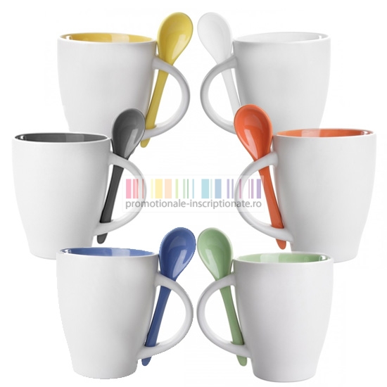 Cani ceramice promotionale cu lingurita si interior colorate - AP862000