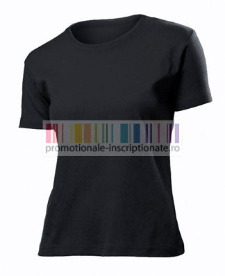 Tricouri promotionale confectionate din bumbac 100% Single Jersey 185 gr/mp, cu croiala de dama tubulara - fara cusaturi laterale, cu guler rotund, maneci scurte si talie joasa dublu intarite.
