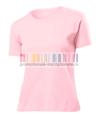 Tricouri promotionale confectionate din bumbac 100% Single Jersey 185 gr/mp, cu croiala de dama tubulara - fara cusaturi laterale, cu guler rotund, maneci scurte si talie joasa dublu intarite.