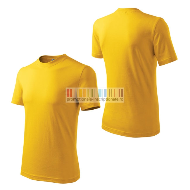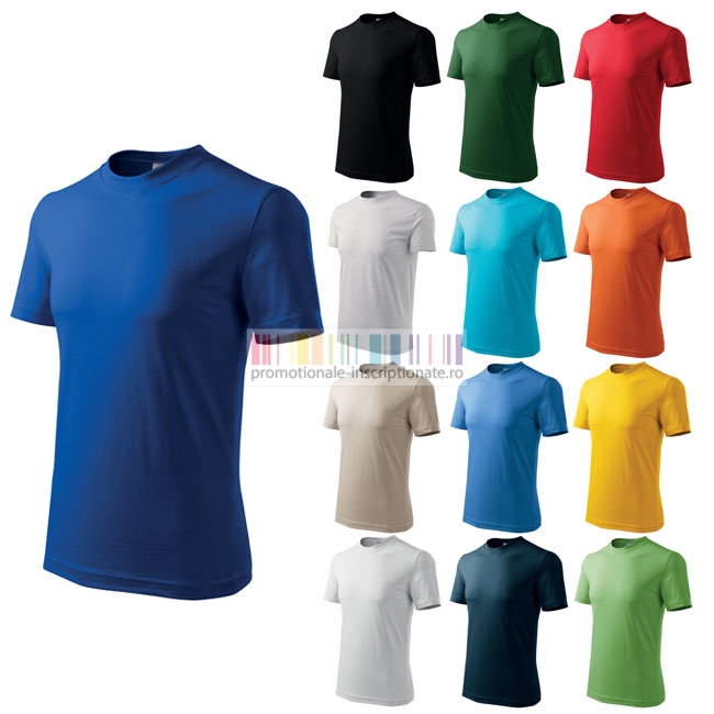 Tricouri promotionale pentru adulti, unisex, confectionate din bumbac 100% Single Jersey 200 gr/mp, cu maneca scurta si guler rotund, fara cusaturi laterale cu banda de intarire in zona umerilor.