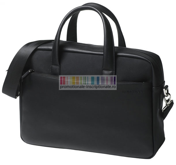 Genti de documente, promotionale de lux - marca Nina Ricci, confectionate din imitatie de piele de calitate superioara (37 x 28 x 9.5 cm) cu design elegant clasic si accesorii metalice cromate, cu compartiment principal cu fermoar, buzunar exterior cu fermoar, manere elegante si bretea de umar ajustabila si detasabila.