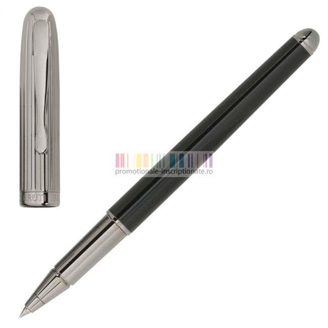 Pixuri metalice de lux, marca Cerruti 1881, cu corp negru lucios din alama, accesorii cromate si finisari de inalta calitate, capac si agatatoare elegante, pasta de scris neagra si cutie de cadou.