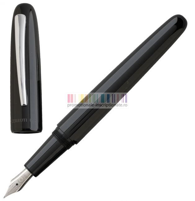 Stilouri metalice de lux, marca Cerruti 1881, realizate din alama cu corp negru lucios si finisari de inalta calitate, cu accesorii cromate, capac si agatatoare eleganta, cerneala albastra si cutie de cadou.