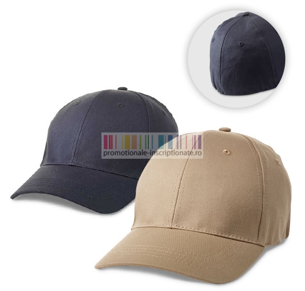 Sepci unisex promotionale confectionate din bumbac 100% cu sase panele disponibile in doua culori (crem si albastru).