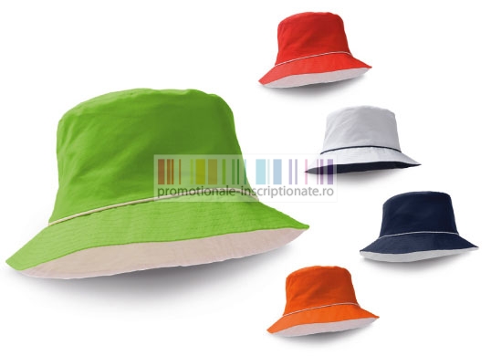 Palarie de soare, unisex, realizata din material textil si disponibila in cinci culori (verde, albastru, rosu, portocaliu si alb).